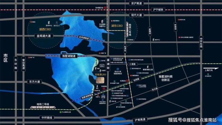 独墅湖科教创新区被誉为国际新“硅谷”,已建成集教育科研、新兴产业、生活配套为一体的现代化新城。区域内相继建设多个科技创新载体,如生物医药产业园、纳米研究所、创意产业园、大学科技园等,包括华为、微软等众多知名大企业入驻。