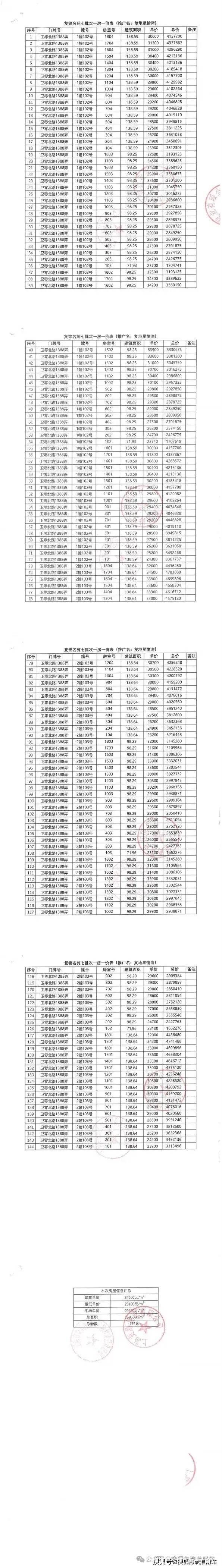 项目一房一价表