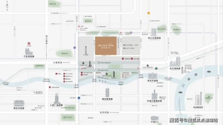 「苏河湾1号」占位城市核心,顶级资源配套密布:直线距离约700米内涵盖5条城市轨交线路和多维城市主干道、商圈密布、城市顶层医疗资源环伺!