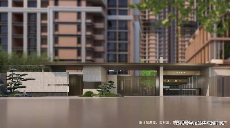 社区大门打造归心庭,社区入口墙面升级为云朵拉灰石材及金属格栅,渲染非凡尊崇的意境,过渡繁华喧嚣与归家静谧,满满的归家仪式感~