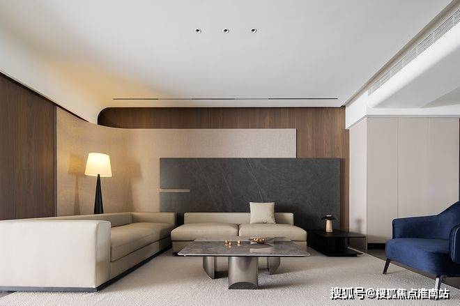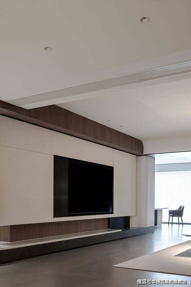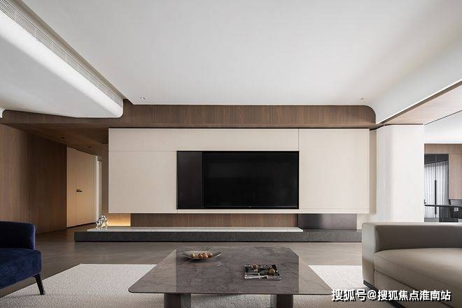 受抽象艺术的灵感启迪,精心打造卷边吊顶,将客厅独有的气韵巧妙裹藏其中。木元素与之相得益彰,为这一方天地的内涵重新赋予独特诠释。
