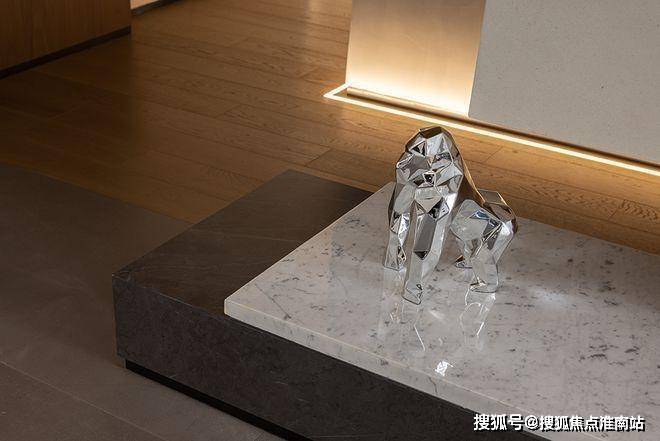 过道尽头的画作与电视旁侧的摆件相互映衬,一同彰显艺术格调,使自由的互动感受与审美带来的愉悦体验肆意蔓延,无限拓展。