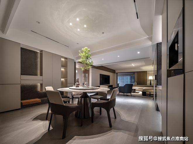 把展陈与收纳需求巧妙融入立面设计之中,从而拓展出更为宽敞的就餐区域。精心挑选那些蕴含优雅气质与柔美姿态的桌椅,以此来调和公区的空间氛围,使其达到和谐稳定的状态。