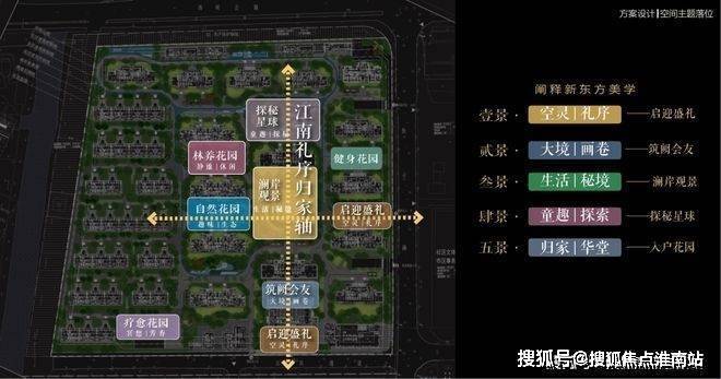 以江南人文精神为源点,打造两轴一环五进空间,江南礼序归家轴串联启迎盛礼、筑阙会友、归家华堂等5重礼制,尊崇归家;