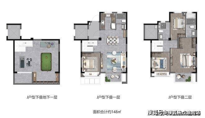 除此之外,项目还有建面约135㎡3房2厅3卫上叠、建面约148㎡4房2厅3卫中叠以及建面约148㎡4房2厅3卫下叠。叠墅产品上有露台下有庭院!