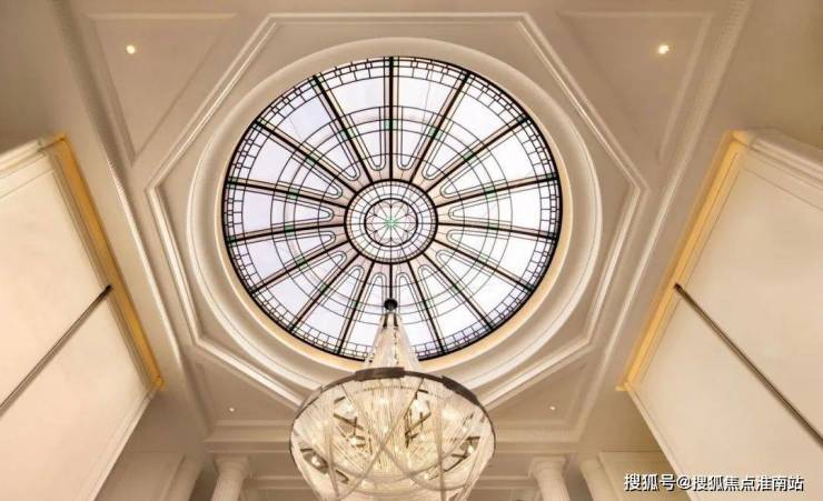 其中,星空顶泳池用 纯天然优质石材打磨的罗马柱点缀。这不仅仅是一个活动空间,更是一个艺术的门庭,让业主足不出户尽享法式惬意优雅。