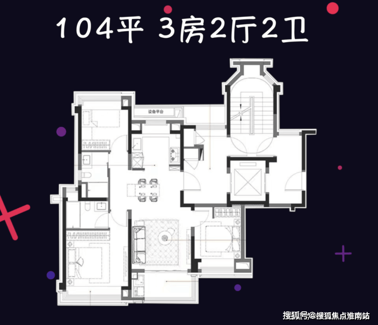 104平的3房2卫空间做了拓展,客厅做了5.5米的竖厅设计,整体会比小户型更舒适, 总价可能要接近600万。
