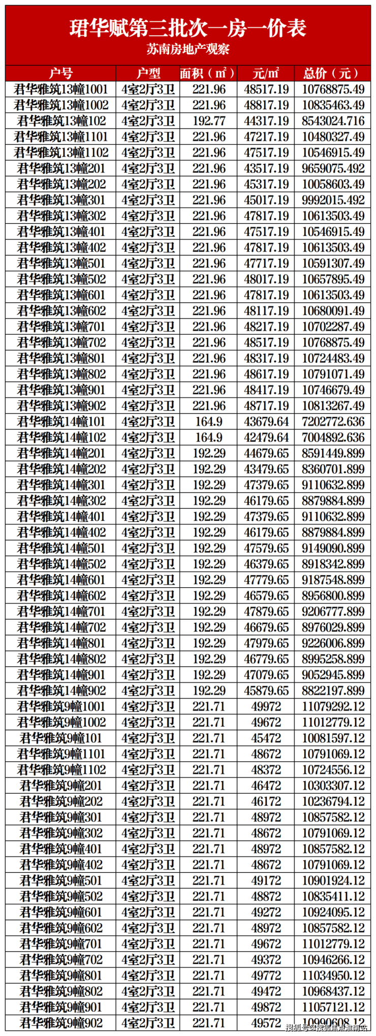 一房一价表如下,建议收藏