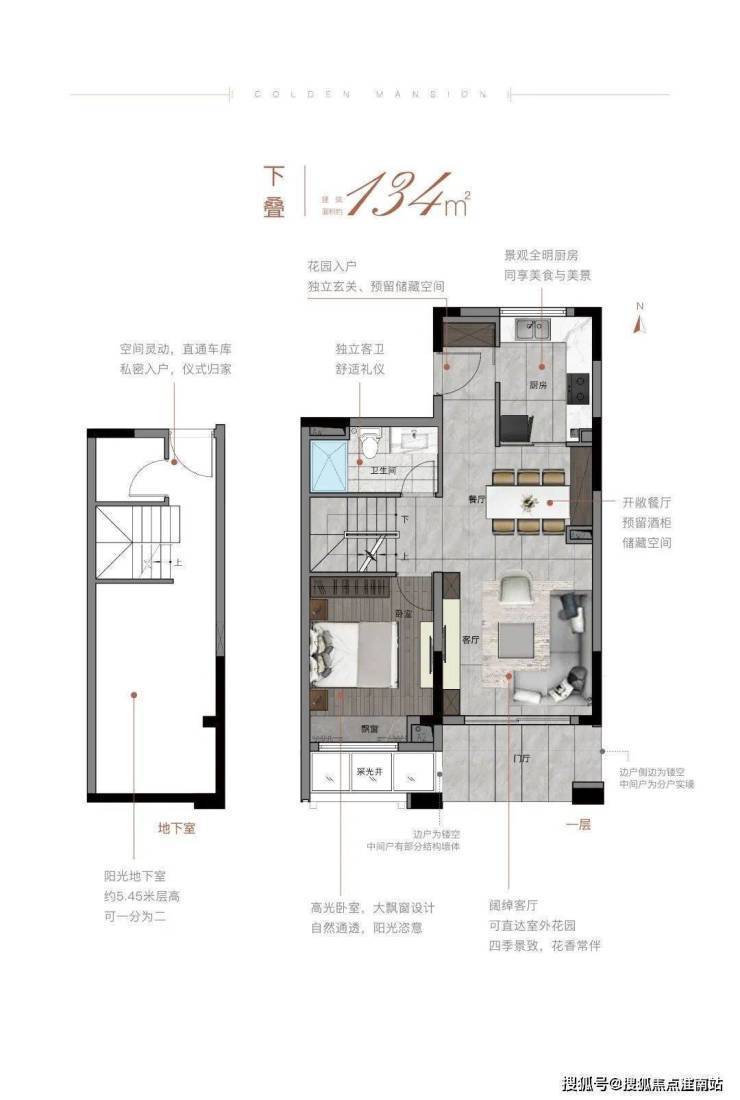 下叠四室两厅三卫设计,由地上2层和地下1层组成,—楼客厅南向可直达室外花园,享有亲近自然、阳光、绿地的惬意生活