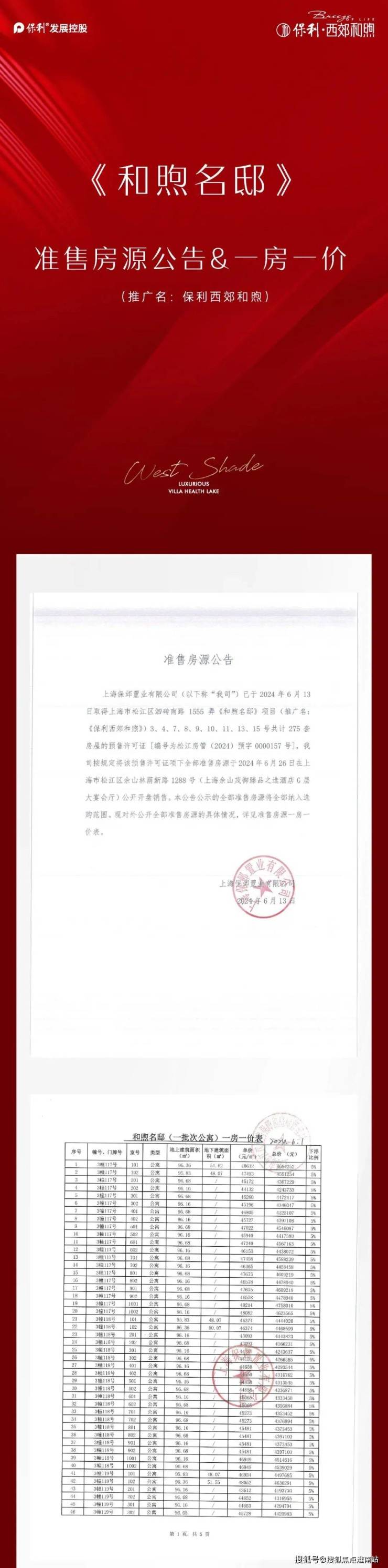 最新消息:一房一价表发布!超低容积率的海派住宅「保利西郊和煦|领墅」正在认购!推出建面约96-122㎡洋房&132-196㎡联排别墅!