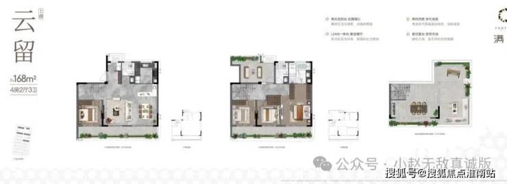 上叠约168㎡4房2厅3卫:南北双阳台,LDKB一体化奢阔横厅;