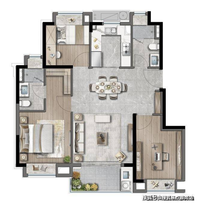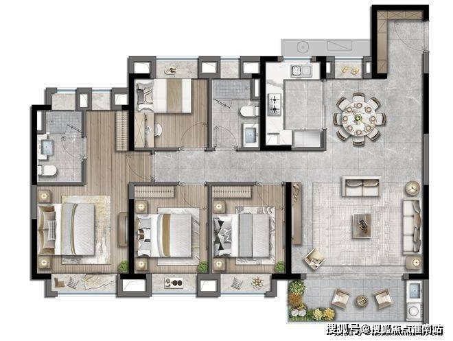 仅仅约129㎡,实现4房功能性,匹配当下越来越多的二胎和三代同堂家庭!