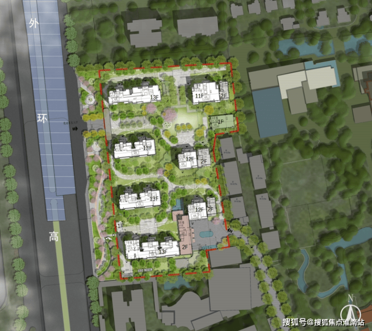 根据设计方案显示, 项目拟建设7栋11-13层小高层住宅,规划292户 ,用地面积17986.5 ㎡,容积率2.0,地上总建筑面积39600㎡,其中,商品住宅总建筑面积33921.01㎡。