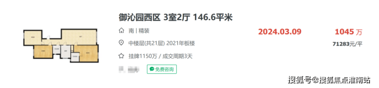 目前御沁园最新一期房源二手房在链家网上挂牌5.8-7.5万/㎡,近期的成交不多,7万+/㎡的成交,还是24年3月的案例。