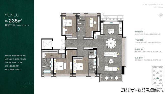 235㎡以上的户型,以3.5米的层高、270度景观窗、独立家政间等亮点,定义城市贵胄的传承大宅