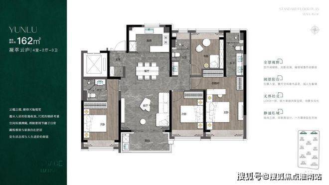 162-187㎡宽境大平层,四开间朝南,空间感拉满,并且做到了“双主卧”设计,是居住需求高端进阶的理想范式。
