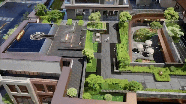 露香园·天誉屋顶花园式入户层效果示意图,以实际交付为准