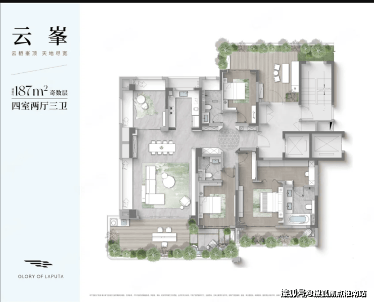 除了以上六种户型,龙湖峯云境还有两种建筑面积约187平户型,做的是四房两厅三卫设计,也是项目的最大户型,想要终极改善的购房者,可以再等等!