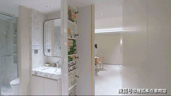 零食柜在华润置地的项目中或许并不稀奇,但这里的零食柜却有着独特的巧思,就连卫生间的墙体也成为收纳空间的一部分。
