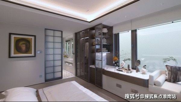 以整块奢岩破题,以皮革融入,白金沙岩板、140户型采用罗马白洞石岩板,主卧背景采用了车线工艺硬包,将豪宅标配升华为材质的史诗。