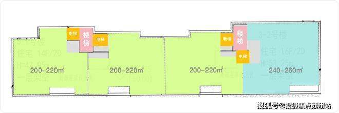 3号楼划分两个单元,每个单元都是2梯2户,预计为200-220m²4-5房户型和预计为240-260m²4-5房户型,大概率都为横厅四开间。