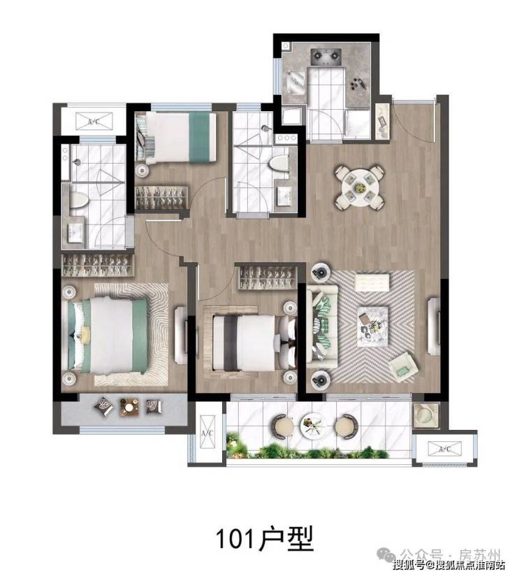 大横厅、宽景阳台、满飘窗设计,三房两卫全能空间