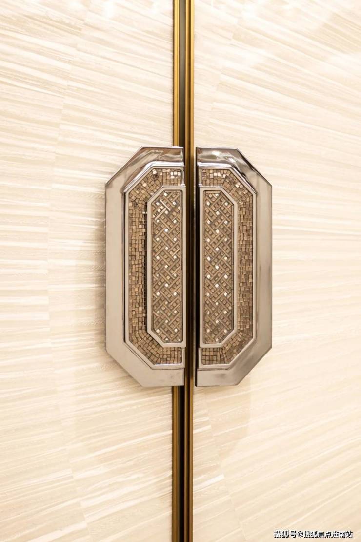 ART DECO风格的黑白拼花大理石地面与大面积镜面墙设计,延展了入户空间的视觉深度。如璀璨星环水晶环形吊灯,增添了归家的仪式感。奢华的玉石背景墙与法式经典家具相映生辉,在静谧与华美之间,彰显翡梵空间的非凡气度。餐厅与西厨之间,八扇手工定制的电动旋转立门,宛如天工造物般的巧思令人惊艳。每一扇门均镶嵌意大利SICIS内含铂金的奢华马赛克,天然贝壳面板在灯光下折射出璀璨光芒。门扇的开合间,实现了空间的灵动转换,私密与开放的完美平衡,为社交与生活增添无限乐趣。每一处细节都经过大师级的匠心打磨,呈现出一场视觉与感官的极致盛宴
