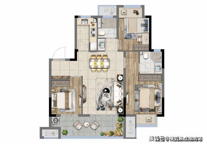 而爱情·山河万物这套建面约97m²的三房两厅两卫的户型,做到了非常好的平衡,玄关入户可以保护好房主隐私两个卫生的设计避免了早晚高峰时排队洗漱的等待,主卧套房设计也让男女主人的日常起居更有私密性。