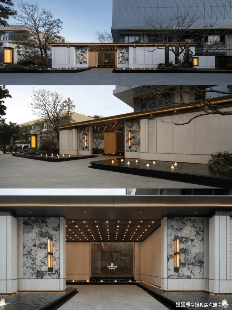 建筑语境|铝板玻璃现代质感建筑立面选用米白与暖灰的现代轻奢色系,铝板线条+涂料一体板组合使用,简约线条设计,彰显现代典雅美学风格。