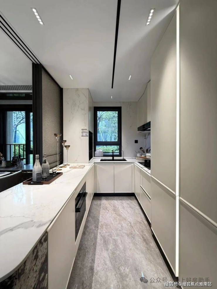 厨房方面,西门子或同档次品牌的燃气灶、抽油烟机、蒸烤箱、洗碗机、嵌入式冰箱五件套;还有细节上的一些配置,例如燃气热水器、末端直饮、凉霸等统统安排上了。