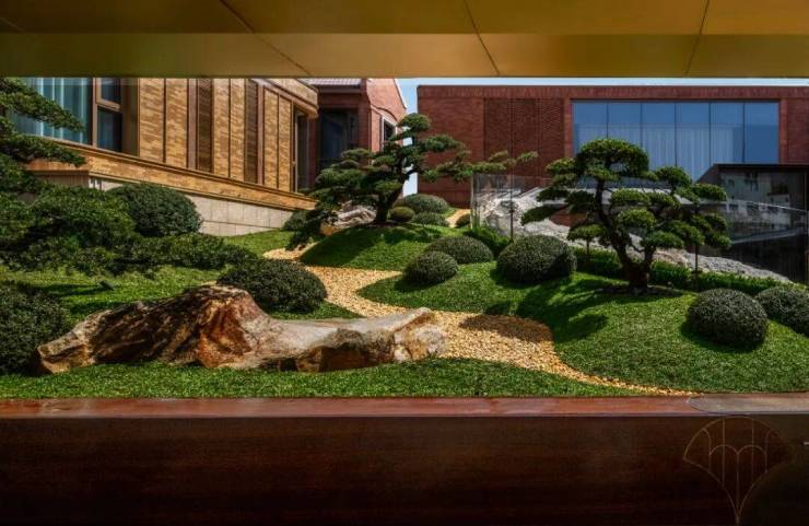 又例如,在“砖”这种材料的运用上,越秀·外滩樾更是做到了极致!用了老砖、陶砖、釉面砖和御窑金砖四种砖。