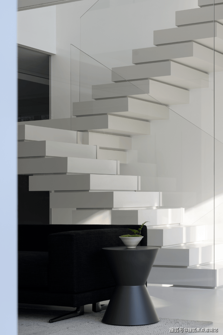 楼梯区完全被几何占据,自然光恰到好处的平衡,进一步呼应着空间的心境,衔接了生活和居所。