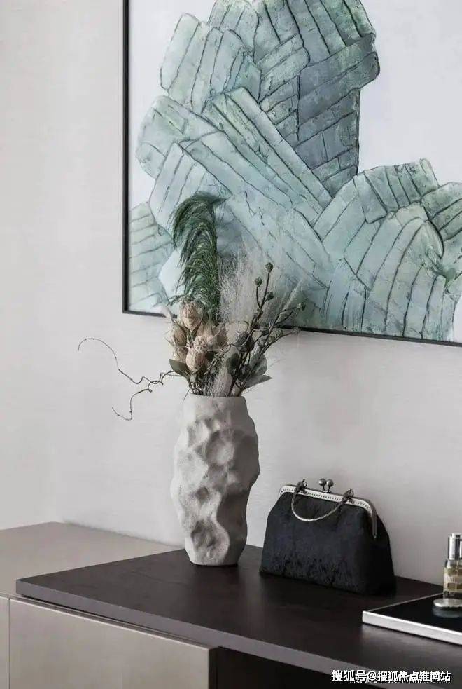 素雅的山石花瓶,还有嶙峋的中式挂画,以及香薰,都赋予了主卧满满的情调感。