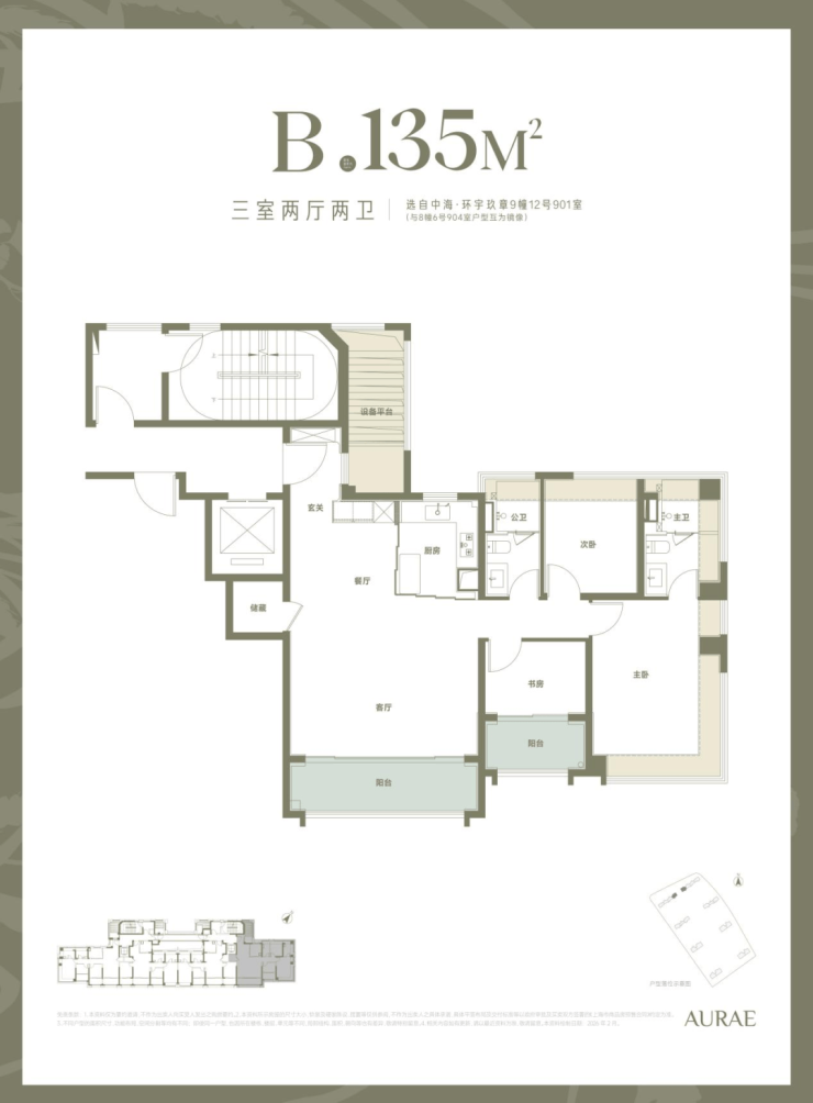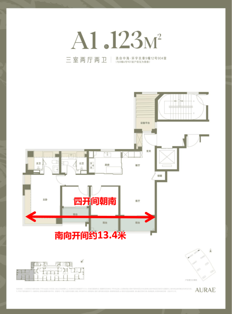 3. 建面约135㎡三房:板块罕有双唯一性大三房