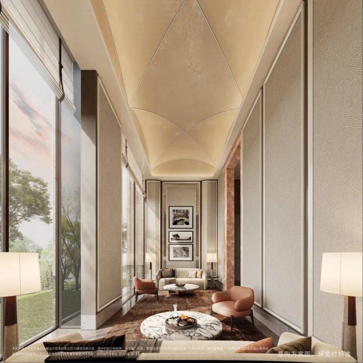 居住圈层高度纯粹;楼栋打造约6米层高架空层,设置阅读、社交等共享空间,匹配高净值人群居住需求;搭配约3.3米奢阔层高,居住舒适度与质感拉满。