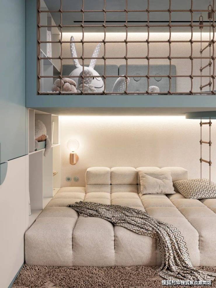 儿童区域则增添了更多的色彩,备显轻松、活力,浅蓝色让人如临海洋,黄色积极活泼有张力,而米色作为主颜色打底,遍布整体空间,来给予温馨、居家的氛围感。