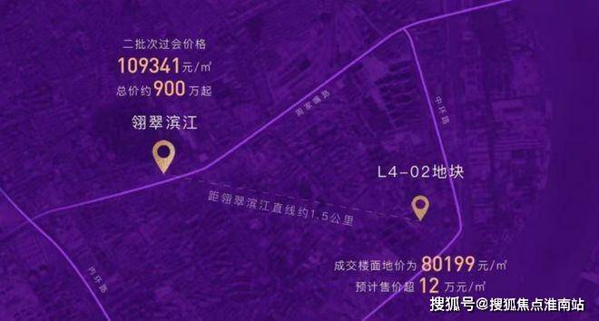 新土拍的地块,预计售价12.5万+/平,它与翎翠滨江的直线距离只有1.5km;