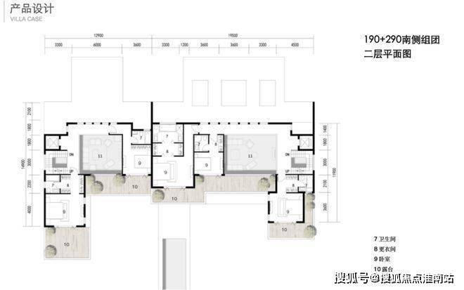 二层都是套房设计+露台+客厅挑空,190的二层是双套房、290的二层是三套房。