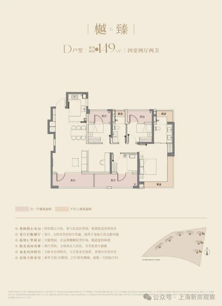 大华·望樾项目以创新理念,打造徐泾首个3.5代宅。主力户型涵盖约94-149㎡滨水公园美宅,空间设计上,采用全生命周期成长户型的理念,通过三阳台创新布局实现至高约19㎡空间拓展,为未来生活预留弹性改造可能;四开间全朝南搭配IMAX级全景窗,最大化引入自然光与日照;秉持“空间平权”理念,次卧可轻松适配双人床尺度,主卧则集合了约270°环景飘窗、独立卫浴系统及衣帽间,兼顾私密性与舒适性。