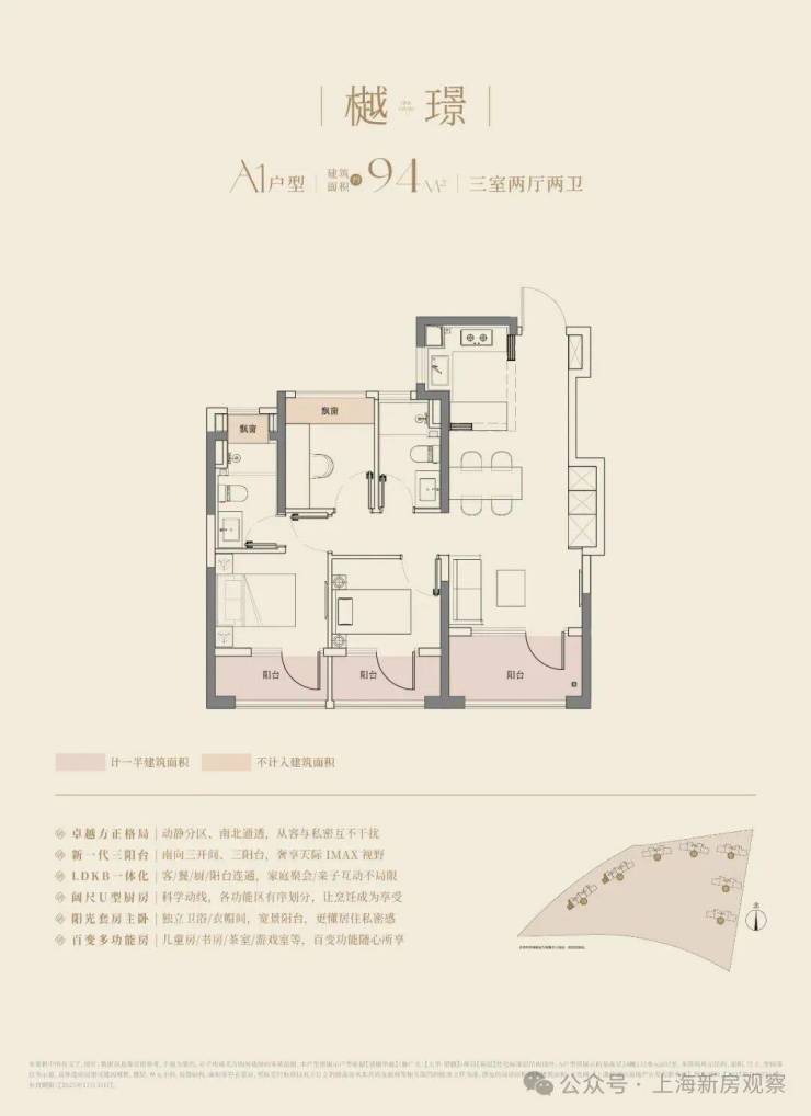 高层:建面约94-148㎡三至四房,得房率约78%-82%,层高3米