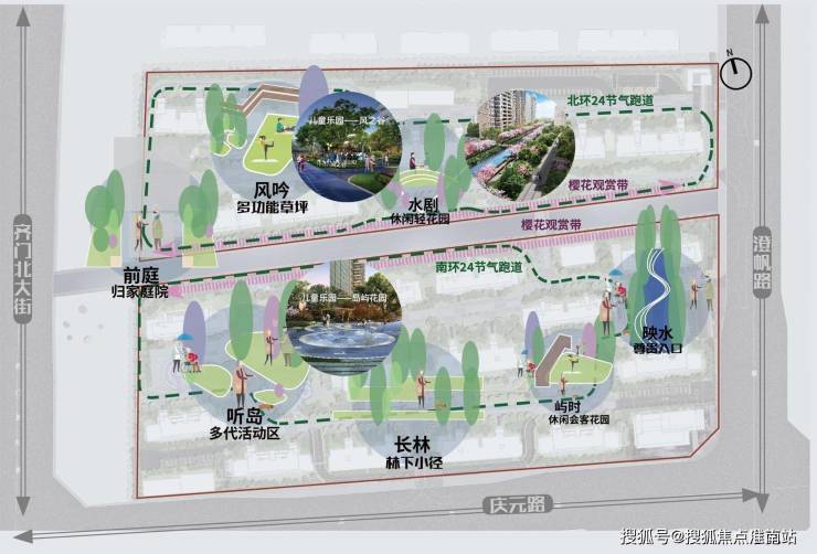 西临元和塘水岸,内引600米樱花河滨风光,多样IP主题双儿童乐园南北环健康跑道,串联多个景观空间。7大主题花园秘境,贯穿回家动线蕴藏生活琳琅雅趣。
