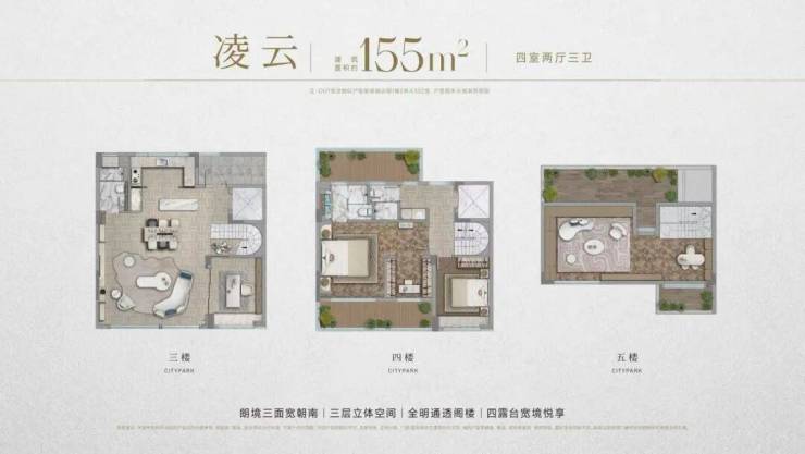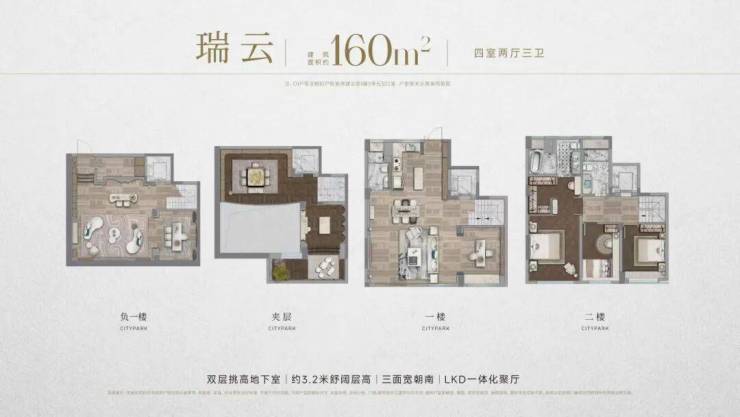 155-160㎡叠墅:上叠赠阁楼、下叠带庭院 + 6 米层高地下室,毛坯交付