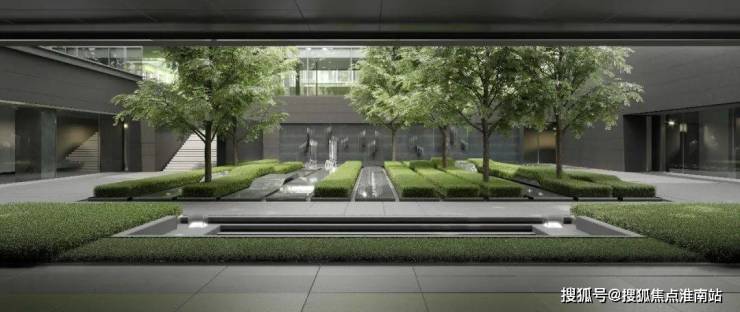 景观设计方面,保利世博天悦采用 引江入园、以水带路的手法,将滨江舒阔的国际生活平移到社区内,打造约 6万㎡景观秘境,媲美全球奢华酒店。采用大面积的留白和现代禅意的表现手法,呈现开阔舒展的质感。