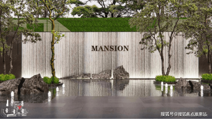 下沉庭院:四水归堂格局,蓝钻石材流水景墙与黑金沙池底,演绎“撒金流银”的聚气意境。