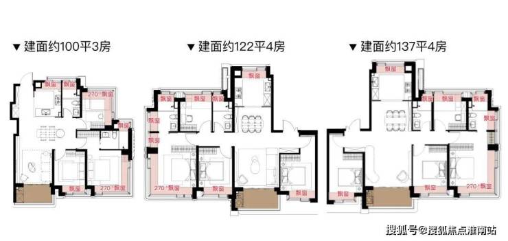 保利天奕首推建面约100平3房,122/137平4房,款款堪称“王牌户型”,不仅把每平米利用到极致,更在采光、附赠等维度实现 全方位突破。