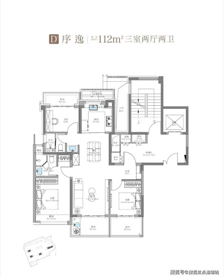 其中,建面约 115㎡鲲鹏阁三房户型