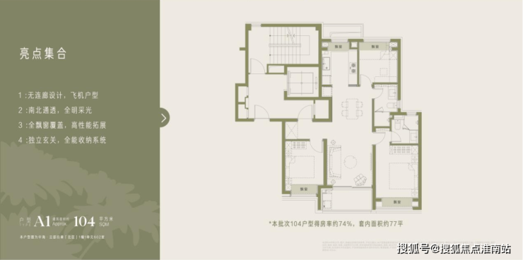 作为滨江核心商务区的稀缺三房产品,104㎡户型以极致的空间利用率,满足三口之家的全周期居住需求。纯板楼无连廊设计,规避了传统户型的采光死角与隐私泄露问题,实现全屋南北通透。独立玄关衔接专属储藏空间,打造高效收纳体系,让居家空间告别杂乱。