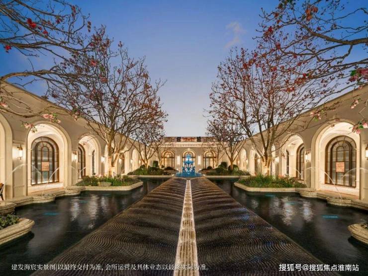 恢弘门头,豪气满满,宽约 65 米, 14 米挑高白玉兰造型穹顶,搭配水景喷泉营造归家仪式感。