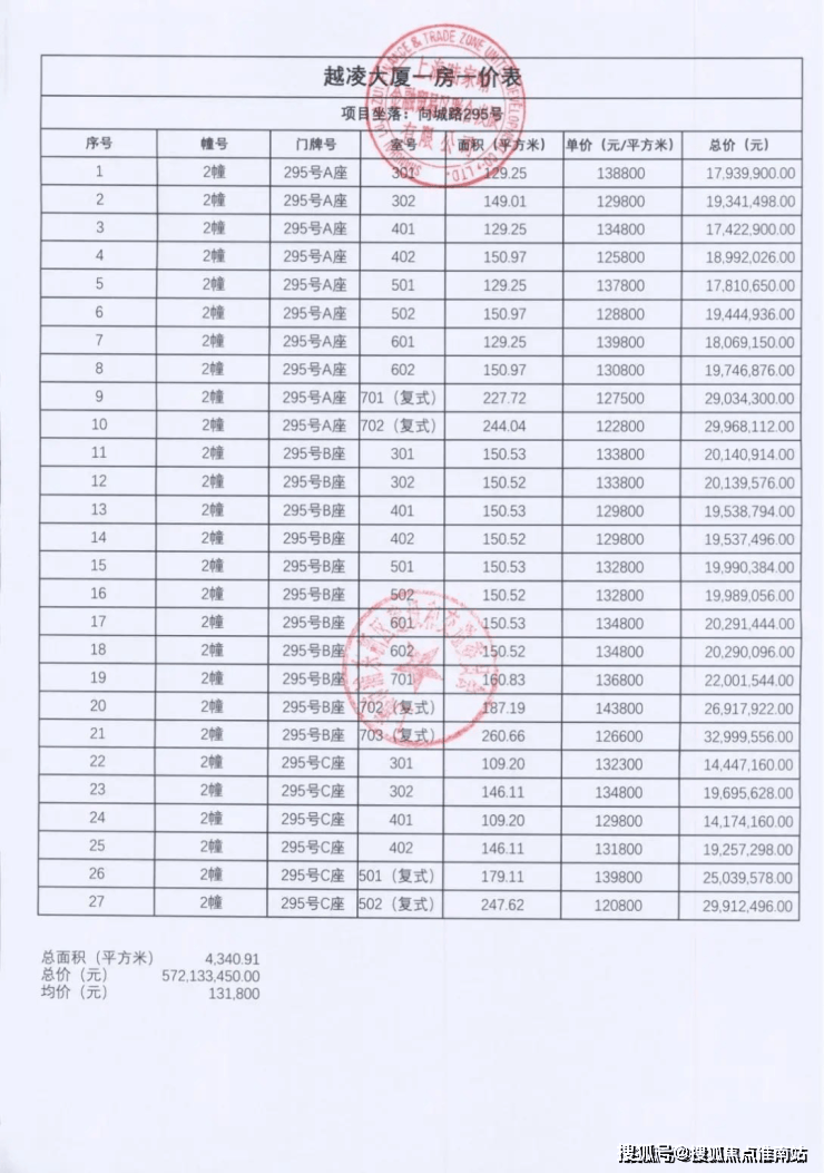 最新一房一价表: