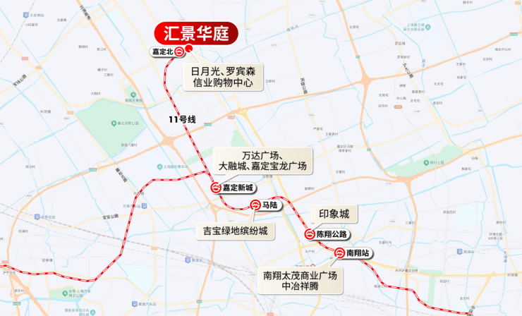 汇景华庭直线距离11号线嘉定北站约500米,很适合普陀、徐汇、长宁通勤的购房者。